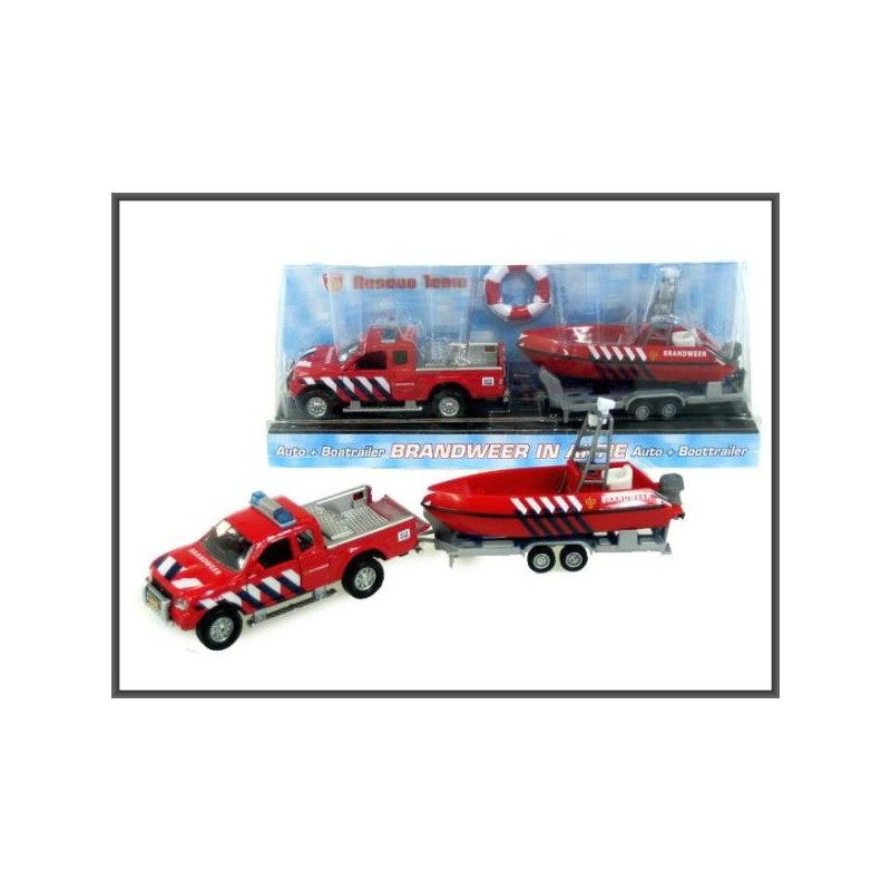 Przyczepka plastikowa dwuosiowa z łodzią motorową + koło ratunkowe