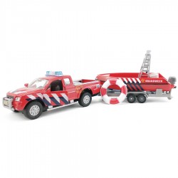 Auto metalowe z otwieranymi drzwiami i tylną burtą, z napędem typu Pull-Back, wnętrze plastikowe (deska, kierownica, fotele). Koła plastikowe z gumowymi oponami.