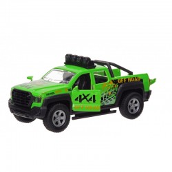 Samochód Pick UP został wykonany bardzo precyzyjnie z metalu i elementów plastikowych z napędem pull-back i otwieranymi drzwiami i tylną klapą ze światłem i dźwiękiem.