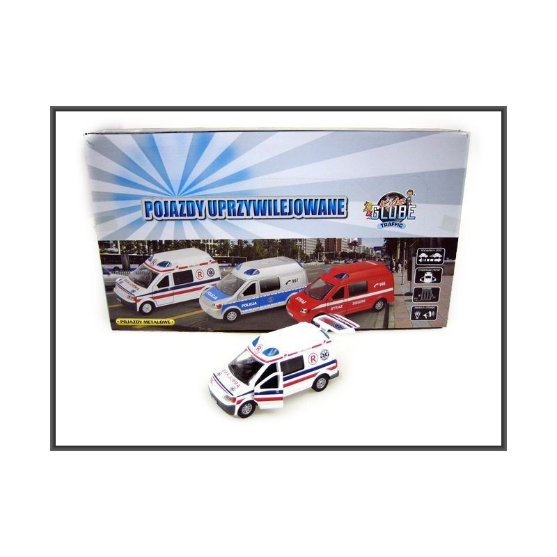 Auto metalowe 15cm karetka pogotowia z napędem,światłem i dźwiękiem.Otwierane drzwi.