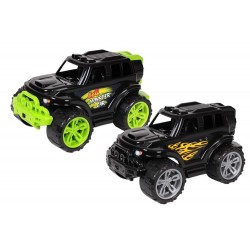 Pięknie prezentująca się terenówka, auto posiada wielkie plastikowe koła, zabawka wykonana jest z wytrzymałego tworzywa sztucznego bez zapachu i bez ostrych krawędzi.
