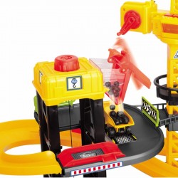 Dodatkowo zaopatrzony jest w lądowisko dla helikopterów oraz podnośnik. Zestaw jest gotowy do zabawy od razu po otwarciu gdyż posiada 5 autek do jazdy po torze.