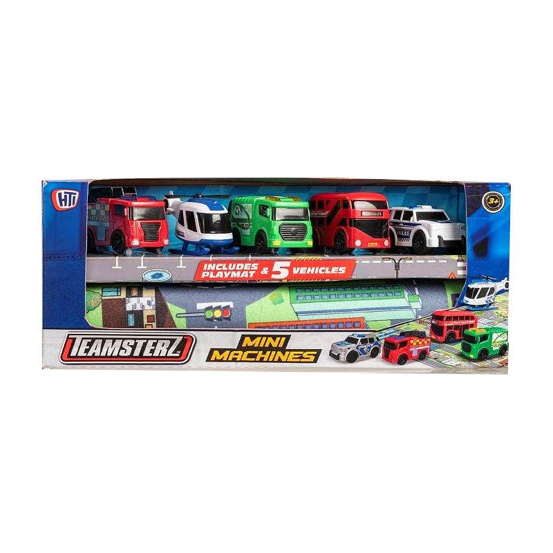 - 5 pojazdów, w tym: auta policyjnego, wozu strażackiego, śmieciarki, piętrowego autobusu oraz helikoptera policyjnego.