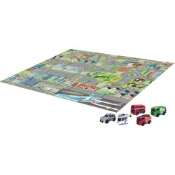 Mata załączona w zestawie jest kolorowa, zawiera obrazki z ulicami, znakami drogowymi, sygnalizatorami oraz innymi.