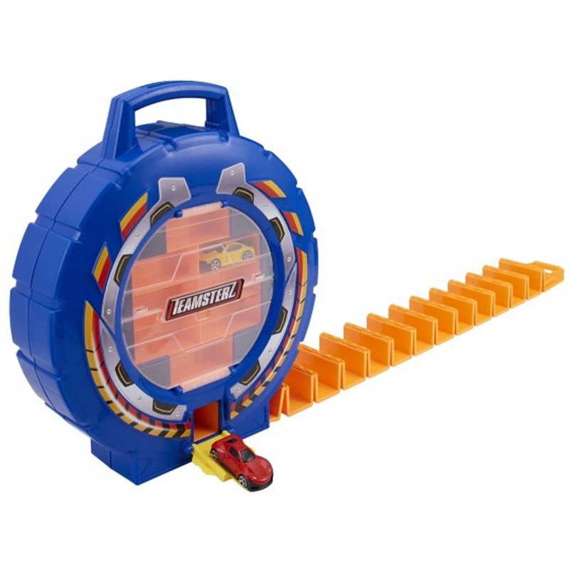Transporter, jest w kolorze niebieskim i przypomina dużą oponę. Jego boki są otwierane i przezroczyste, dzięki czemu po umieszczeniu autek wewnątrz pojazdu, będą one widoczne nawet po ich zamknięciu. Transporter pomieści aż 23 resoraki, na kilku poziomach. Transporter wyposażony jest w 2 zaparkowane pojazdy oraz 23 pustye skrytki na autka typu resorak. Dodatkowo walizkę wyposażono w rączkę do przenoszenia. Na dole walizki znajduje się wyrzutnia, która wystrzeliwuje autka.