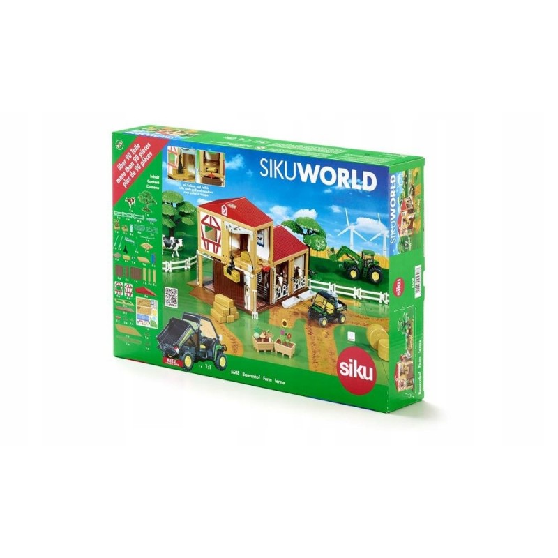 Zestaw Farma od marki SIKU i zbuduj swój własny świat z pomocą elementów zawartych w zestawie. Podnieś bele siana i umieść je na strychu. Zaopiekuj się krowami, a mleko przewieź do mleczarni swoim Johne Deere Gator. Skala 1:50. Długość: 39.6 cm, szerokość: 21.3 cm, wysokość: 59,1 cm. Idealny zestaw do zabawy. Wiek 3+.
