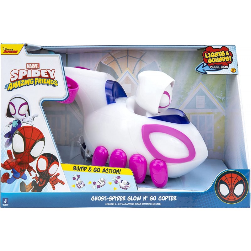 Mali fani popularnego serialu „Spidey i super-kumple” z pewnością będą zachwyceni tym superszybkim, biało-różowym helikopterem Glow N’ Go z Ghost Spider za sterami. Natychmiast przyciągnie ON uwagę Twojego dziecka, momentalnie stając się jego nową ulubioną zabawką!