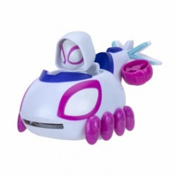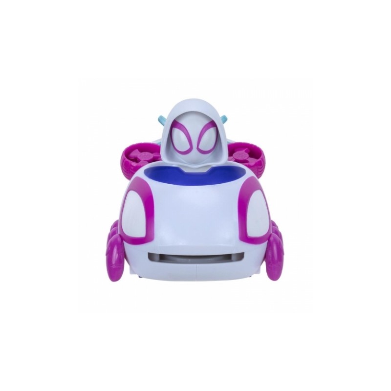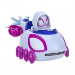 Różowo-biały pojazd Ghost Spider na pewno przyciągnie uwagę Twojego dziecka! A gdy tylko pojawią się problemy, możecie łatwo utrzymać niebezpieczeństwo w ryzach – wystarczy nacisnąć głowę Ghost Spider, aby Disc Dasher wystrzelił dysk.