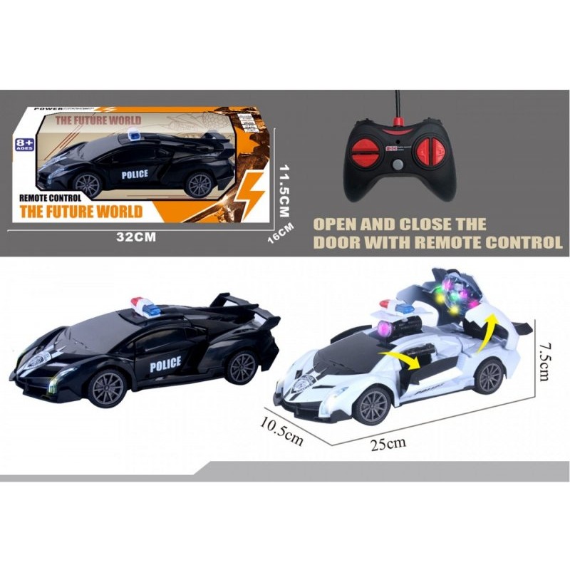 Szybki radiowóz policji do łapania piratów drogowych, ucieszy każdego przedszkolaka. Pojazd posiada efekty dźwiękowe oraz świetlne. Możliwość otwierania i zamykanie drzwi z pilota.