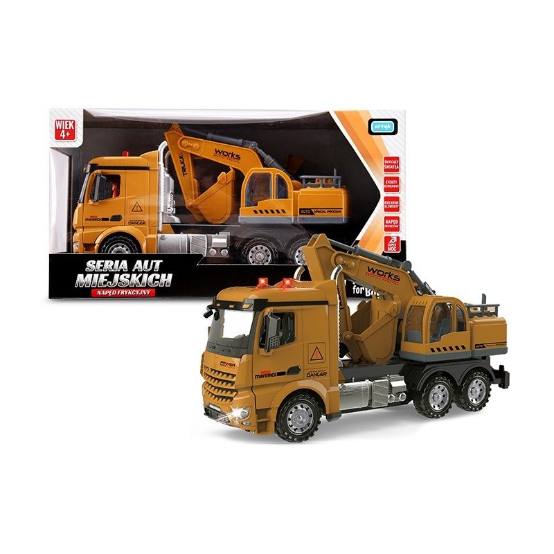 Koparka, która generuje efekty świetlne i dźwiękowe oraz ma mnóstwo ruchomych elementów. Auto odznacza się napędem frykcyjnym. Cechy: - otwierane drzwi, - dźwięk pracy silnika, - światła z przodu i z tyłu, - światła syren alarmowych, - ruchome ramię koparki, - obracana koparka.