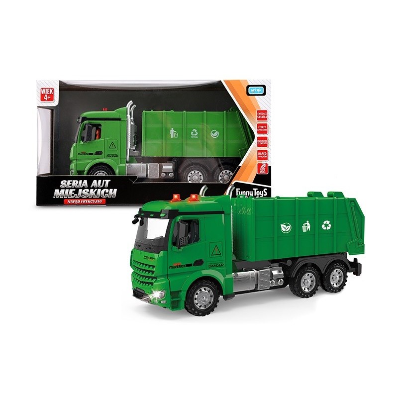Śmieciarka z efektami świetlnymi i dźwiękowymi oraz ruchomymi elementami.