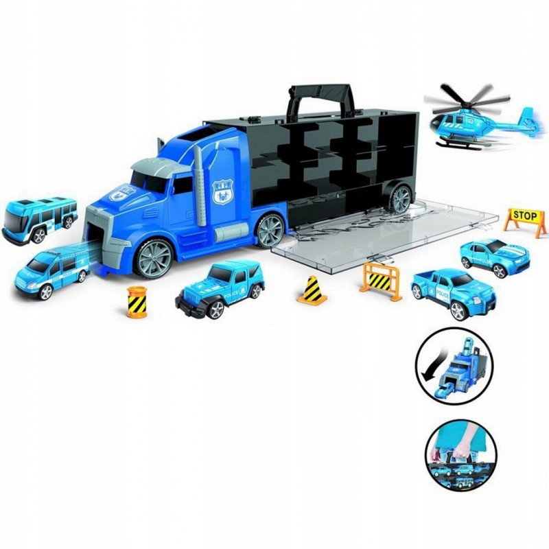 Zestaw autek w wygodnej walizce w kształcie ciężarówki. Każde auto posiada w walizce osobną przegrodę a kabina ciężarówki może służyć jako wygodny wyjazd by ruszyć do zabawy. Walizka jest zamykana i posiada wygodną rączkę, która umożliwi łatwe spakowanie i przenoszenie po zakończeniu wyścigu.