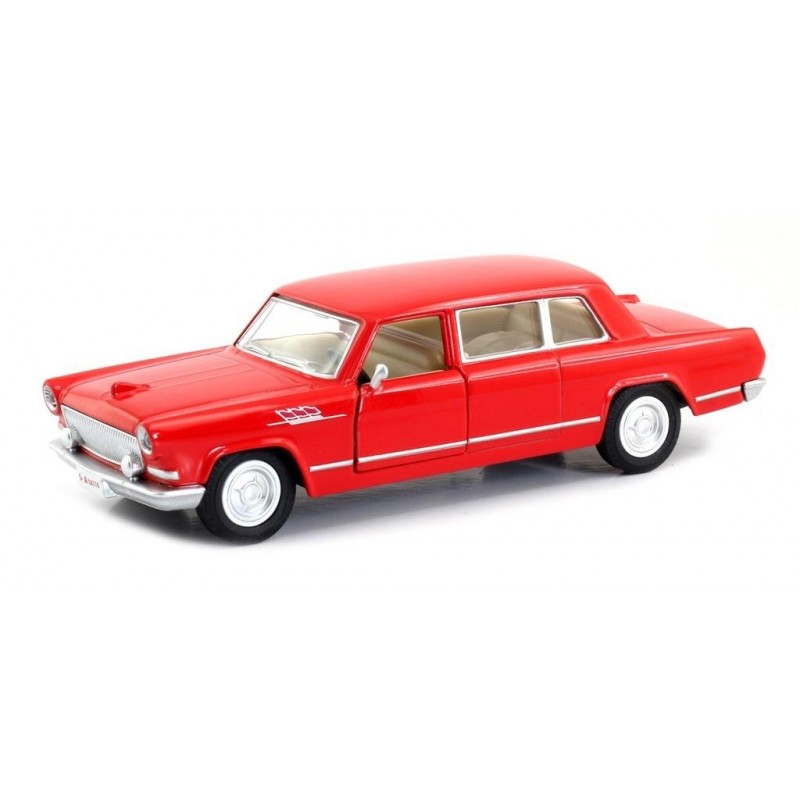 Samochód metalowy z plastikowymi elementami wykończenia wnętrza.