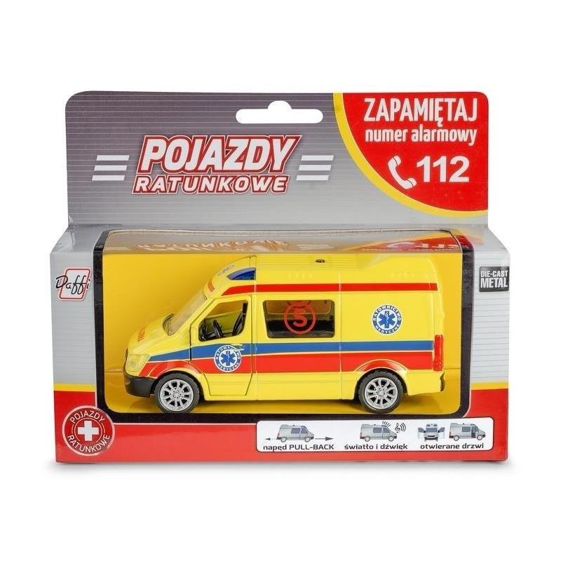 Pojazd Ratunkowy z napędem pull-back oraz efektami świetlnymi -Ambulans