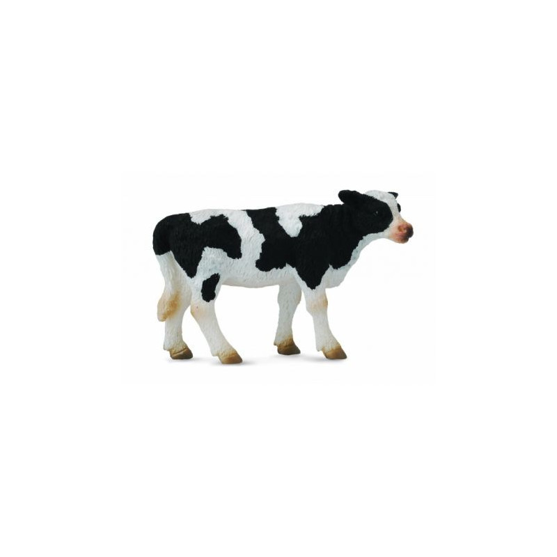 Czarno-biały cielaczek stojący, młoda krówka.