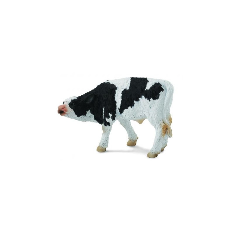 Czarno-biały cielaczek ssący mleko, młody byczek.