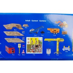 Zestaw składa się z czterech nowych płyt podstawy, które swoim kolorem i kształtem oddają wrażenie trójwymiarowego fundamentu i są kompatybilne z innymi płytami SIKUWORLD. Zestaw zawiera również kontener budowlany, barierki i wielki dźwig. Wysięgnik jest obrotowy, a na ruchomym wózku podwieszonym można na hakach podnosić i opuszczać materiały budowlane. Przenośnik taśmowy jest ruchomy. Jednostka sortująca oddziela materiał wyburzeniowy, dzięki czemu może być on przetransportowany zgodnie ze swoim przeznaczeniem. Dołączony do zestawu zwrotny ciągnik pomaga w transportowaniu materiału i przewozi maszyny na plac budowy.
