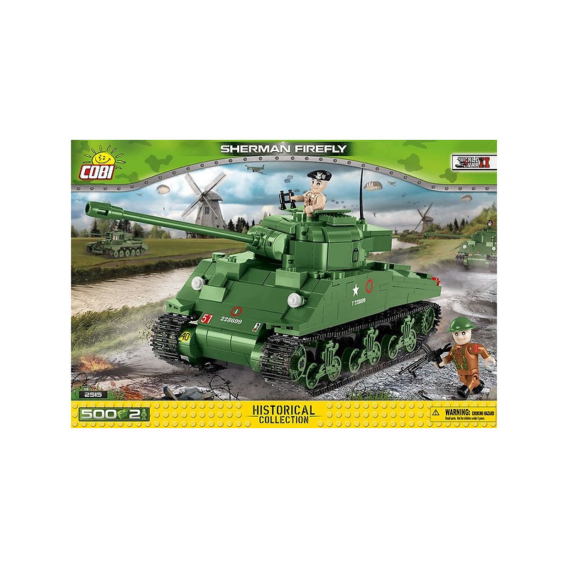 Zestaw klocków firmy COBI Sherman Firefly amerykański czołg średni z serii Mała Armia.Zestaw zawiera:500 klocków 2 figurkiWiek 7+