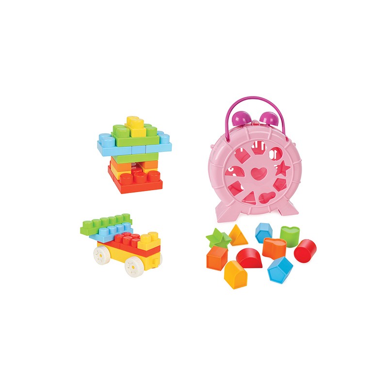 - 10 klocków do sortera w różnych kształtach i kolorach