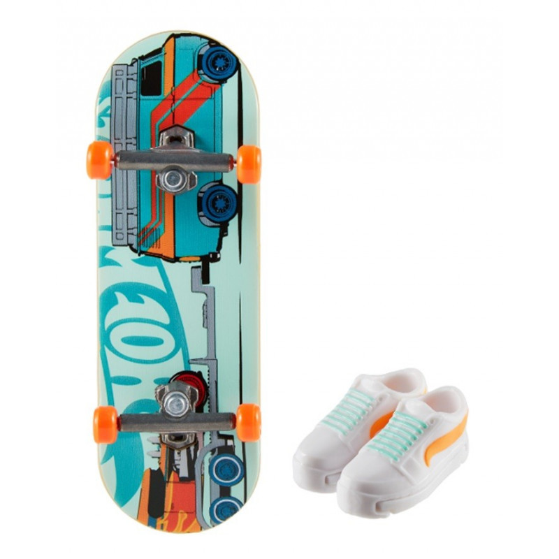 Hot Wheels i legenda skateboardingu, Tony Hawk, połączyli siły, aby stworzyć epicką kolekcję deskorolek do jazdy palcami doskonałą do ćwiczenia nowych sztuczek i niesamowitych tricków. W każdym zestawie jest deskorolka Hot Wheels do jazdy palcami oraz para stylowych zdejmowanych butów deskorolkowych, pomagających utrzymać palce na miejscu podczas rozgrzewających do czerwoności popisów. Nowicjusze mogą nabrać pewności siebie oraz lepiej wyczuć deskę i ruchy, a potem spróbować trudniejszych manewrów już bez butów na palce. Każda deska ma niepowtarzalny wzór, dzięki czemu fani będą chcieli zebrać je wszystkie. Sprzedawane oddzielnie w zależności od dostępności. Kolory i elementy dekoracyjne mogą się różnić.
