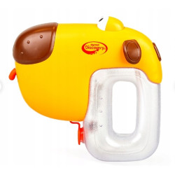 Gotowi do super zabawy? To zaczynamy. Uroczy psiak wyposażony w zbiorniczek oraz przycisk umożliwiający strzelanie wodą. Aby zacząć zabawę, należy umieścić w pieskowej wyrzutni baterie, napełnić zbiornik wodą i nacisnąć przycisk odpowiadający za tryskanie wodą -po naciśnięciu przycisku, piesek strzela wodą z pyszczka wodnymi pociskami. Gdy amunicja się wyczerpie, wystarczy ponownie napełnić zbiornik wodą, a piesek znów będzie gotowy do zabawy.