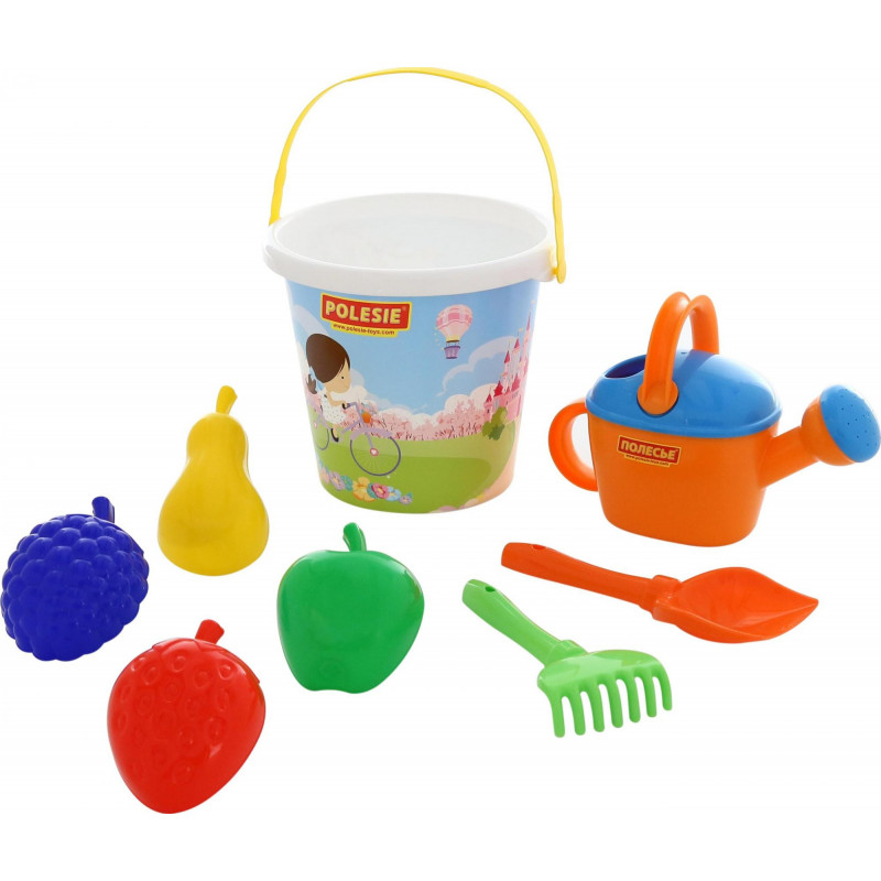 Zestaw do piasku firmy Wader-Polesie. Zestaw składa się z 4 foremek i łopatki, grabek, wiaderka i konewki. Wykonany z wysokiej jakości materiałów w żywych kolorach. Seria składa się z kilku różnych kolorów. Cena dotyczy jednej sztuki. Zabawki wysyłamy losowo.