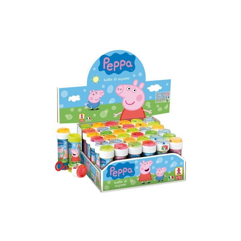 Bańki mydlane o pojemości 60 ml dostępne w różnych wzorach z bajki Peppa. Cena za sztukę.