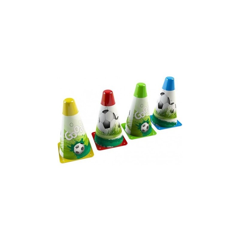 - 4 pomarańczowe pachołki z motywem piłki nożnej