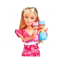 Zabawa jest ekscytująca, gdyż nie wiadomo jakiej płci urodzi się dzidziuś. Czy to będzie chłopiec, dziewczynka a może bliźniaczki? Przekonamy się podczas zabawy po odpakowaniu lalki. Zabawa Steffi w ciąży i jej nowo narodzonym niemowlakiem bądź niemowlakami to lekcja empatii i pozwala dziewczynce wejść w rolę odpowiedzialnej opiekunki. Oferta lalek z serii Steffi jest bardzo szeroka i zawiera zróżnicowane lalki z bogatymi i precyzyjnie wykonanymi akcesoriami, a także zestawy lalek z pojazdami, wyposażeniem wnętrz oraz atrybutami związanymi z wykonywaną pracą. Lalka Steffi ubrana jest w sukienkę oraz buty.