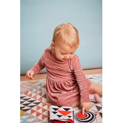 Mięciutka, materiałowa książeczka sensoryczna od Mom's care została stworzona z myślą o najmłodszych. To właśnie w pierwszym okresie życia dziecka kluczową rolę odgrywa stymulacja zmysłów. Wodzenie spojrzeniem i wpatrywanie się w zabawki rozwija zmysł widzenia oraz spostrzegawczość malucha. Noworodek nie ma do końca rozwiniętego wzroku, dlatego czarno-biała książeczka sensoryczna z dodatkiem czerwonego, będzie dla niego idealnym stymulatorem. Dodatkowym atutem są duże, wyraźne formy geometryczne, które malec bez problemu będzie mógł dostrzec.