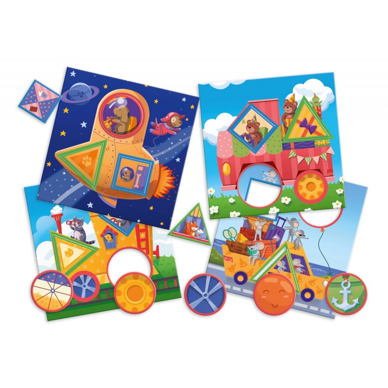 Misie, myszy, kotki, liski… gdzie tak wszyscy pędzą? Uzupełnij ilustracje odpowiednimi elementami i opowiedz własną historię! Gra zawiera kolorowe, plansze umożliwiające dzieciom stworzenie własnych ilustracji. Rozwija spostrzegawczość, kreatywność i logiczne myślenie Twoich pociech.