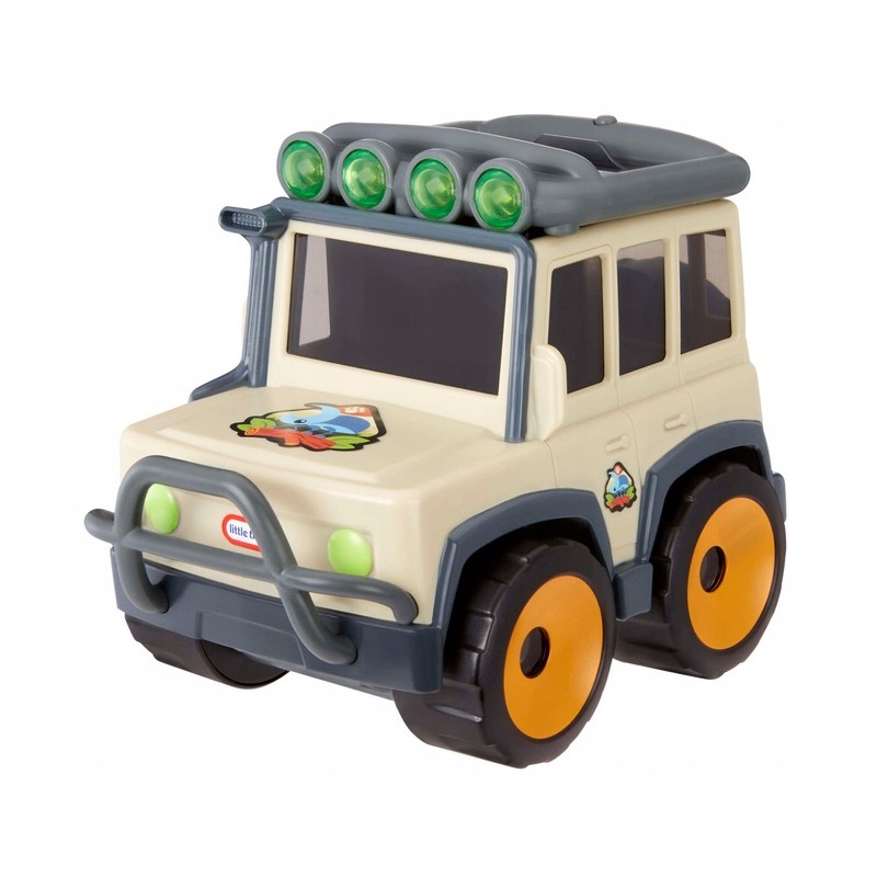 Safari SUV pochodzi z serii Big Adventures, pojazdów łączących naukę z zabawą. Został wykonany z dbałością o szczegóły. Ma beżowy kolor i duże czarno-pomarańczowe ruchome koła. Dzięki tej zabawce dziecko może aktywnie eksplorować otoczenie. Koła auta są zarazem lornetką, koło zapasowe kompasem, a oświetlenie latarką.