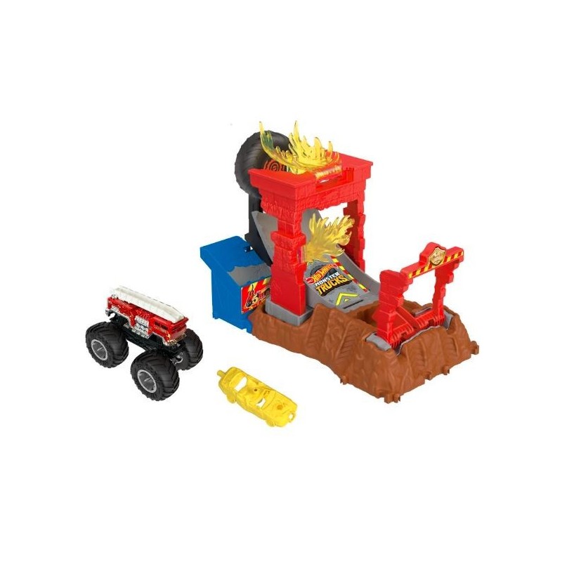 Z zestawem Hot Wheels Monster Trucks Arena Smashers wyzwanie ''Ognista Demolka'' możesz bawić się do woli w kraksy i demolkę. Zestaw zawiera jeden pojazd Hot Wheels ''HW 5 - Alarm'' ze świata Monster Trucks oraz niesamowite funkcje i epicką demolkę. Zestawy Hot Wheels Monster Trucks Arena Smashers można łączyć i dzięki temu stworzysz Arenę Monster Trucks (zestawy sprzedawane oddzielnie). Wymiary opakowania: 30,5x25,5x8cm Wiek: 4+