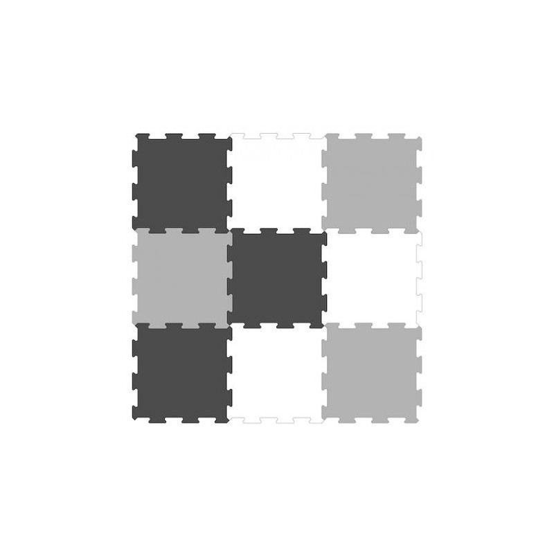 Ta trójkolorowa mata piankowa w kolorze - czerń,biel i szarość , może być używana jako dywan- podkładka na podłogę oraz jako puzzle do układania. Wykonana z miękkiej pianki, przyjemnej w dotyku. Może też posłużyć jako podkładka przy innych zabawach czy drzemce. Zabawka uczy spostrzegawczości, rozpoznawania kolorów i kształtów, budowania figur przestrzennych, zabawy z wyobraźnią. Pomysły jak można bawić się puzzlami połącz z dzieckiem wszystkie elementy i opowiedz, co się na nich znajduje. Zbuduj z puzzli figury przestrzenne, np. kostkę lub pudełko i wymyślcie wspólnie, jak można się nimi bawić. Zrób z nich stolik. Tak wiele możliwości zabawy, ogranicza was jedynie wasza wyobraźnia. Układajcie razem piankowe obrazki. Zabawa ta idealnie rozwinie zdolność myślenia logiczno-przestrzennego. Możecie także budować piankowe konstrukcje, sześciany, wieże, czy piramidy. Puzzle są bardzo miękkie i przyjemne w dotyku.