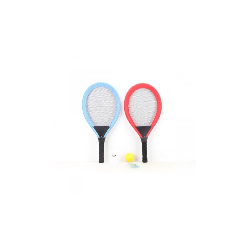 Rakietki są wykonane z lekkiego plastiku, a obręcz pokryta jest miękką pianką ułatwiającą grę. To bardzo bezpieczne rozwiązanie.