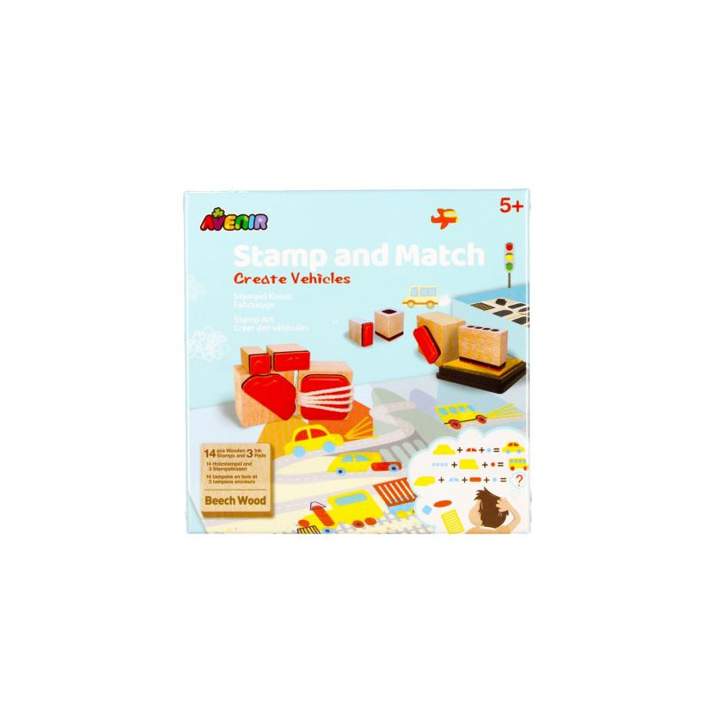 Czy lubisz zabawy ze stemplami? Zestaw stempluj i dopasuj Avenir zawiera 14 drewnianych pieczątek i 3 różnokolorowe podkładki z tuszem - wszystko, czego potrzebujesz, aby stworzyć swoje obrazki! Użyj stempli, aby wykonać rysunki, kartki z życzeniami lub udekoruj, co chcesz, korzystając z własnej nieskończonej wyobraźni! Zawartość: 14 drewnianych pieczątek 3 poduszki z tuszem (żółty, niebieski, różowy) sznurek 3 plansze do scenek instrukcja