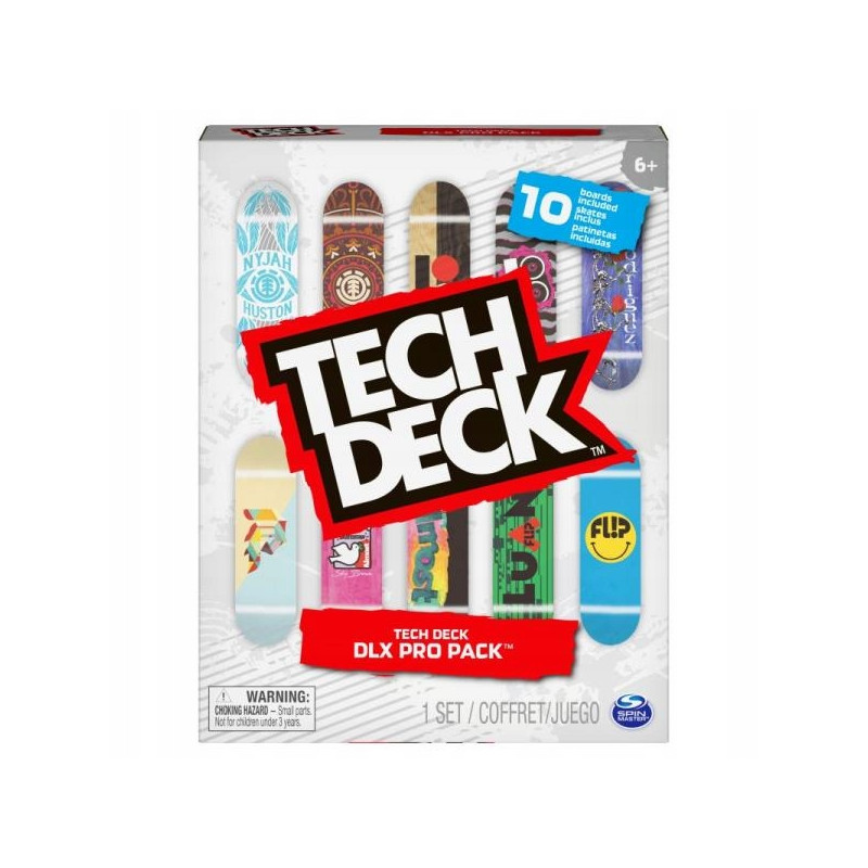 Zestaw 10 oryginalnych, miniaturowych deskorolek Tech Deck. Każda z nich zawiera wyjątkową grafikę nawiązującą do najbardziej rozpoznawalnych marek ze świata skateboardingu. Komplet pozwala na ćwiczenie nowych tricków. Zabawka odznacza się wysoką jakością. Jest kompatybilna z innymi zestawami Tech Deck. Wszystko zapakowano w tekturowe opakowanie z grafiką. Wymiary opakowania: 18x4x23cm