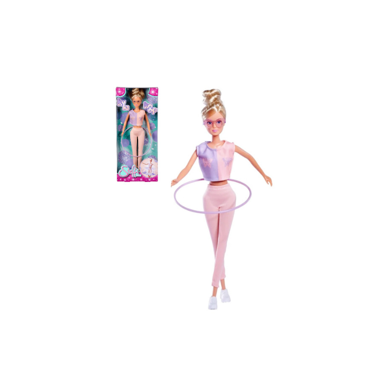 Steffi ubrana jest w sportowy strój do ćwiczeń i białe snickersy. W zestawie hula-hop, który po przypięciu w wyznaczonym miejscu kręci się wokół talii Steffi.