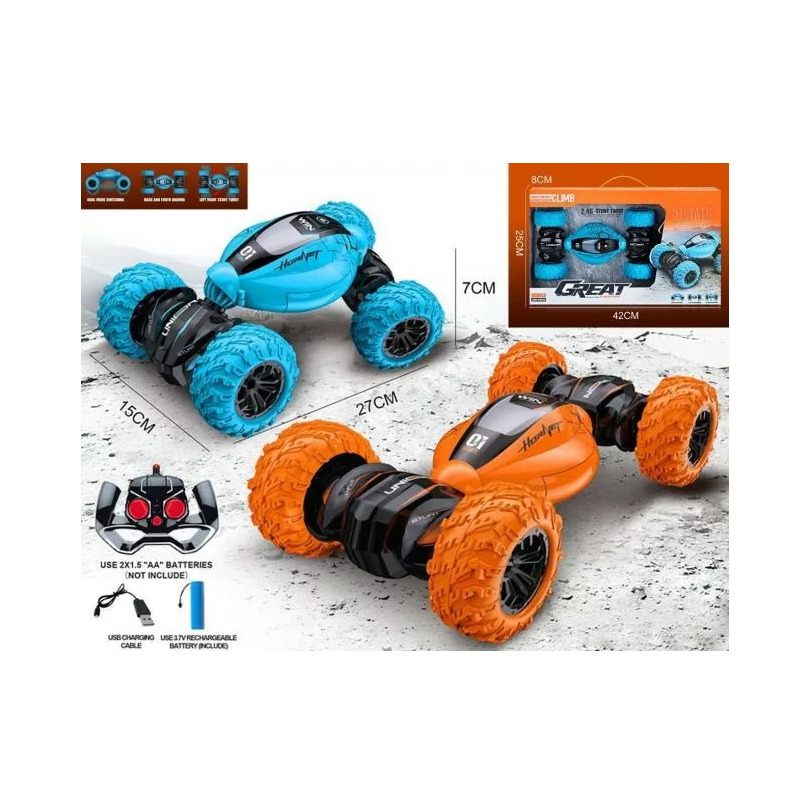 Auto R/C Great Stunt, Funkcje: światło, jazda w 4 kierunkach, 27x15x7cm, ładowanie USB + akumulator.
