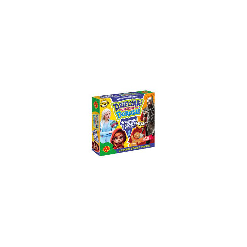Co mogło obudzić Śpiącą Królewnę? Jak nazywa się syn Homera Simpsona? Gdzie mieszkają Muminki? Czy jesteście gotowi na wyjątkowe starcie pokoleń w przezabawnej grze karcianej? Tutaj dzieciaki rywalizują z dorosłymi, odpowiadając na podchwytliwe pytania. Zabłyśnij wiedzą o filmach i bajkach i zostań zwycięzcą!