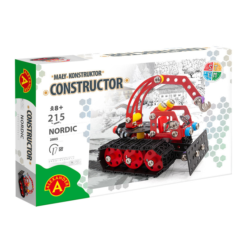 Mały Konstruktor to seria zabawek do samodzielnego montażu, rozwijająca zdolności manualne oraz wyobraźnię przestrzenną. Każdy model składa się z elementów metalowych o różnej wielkości i kształtach, a także jest wzbogacony kolorowymi elementami z tworzyw sztucznych. Dzięki dołączonemu zestawowi narzędzi, można zbudować wyjątkowy pojazd zgodnie ze wskazaniami instrukcji lub wedle własnej wyobraźni. Model po złożeniu jest trwały i swobodnie może służyć do dalszej zabawy. To idealny wstęp do rozbudzenia w dziecku pasji inżyniera. Zabawka która łączy pokolenia, zachęcając do wspólnego majsterkowania.
