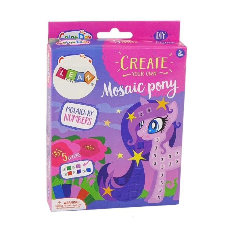 Mozaika z numerkami, na które dziecko przykleja kolorowe naklejki w odpowiedni kwadracik.