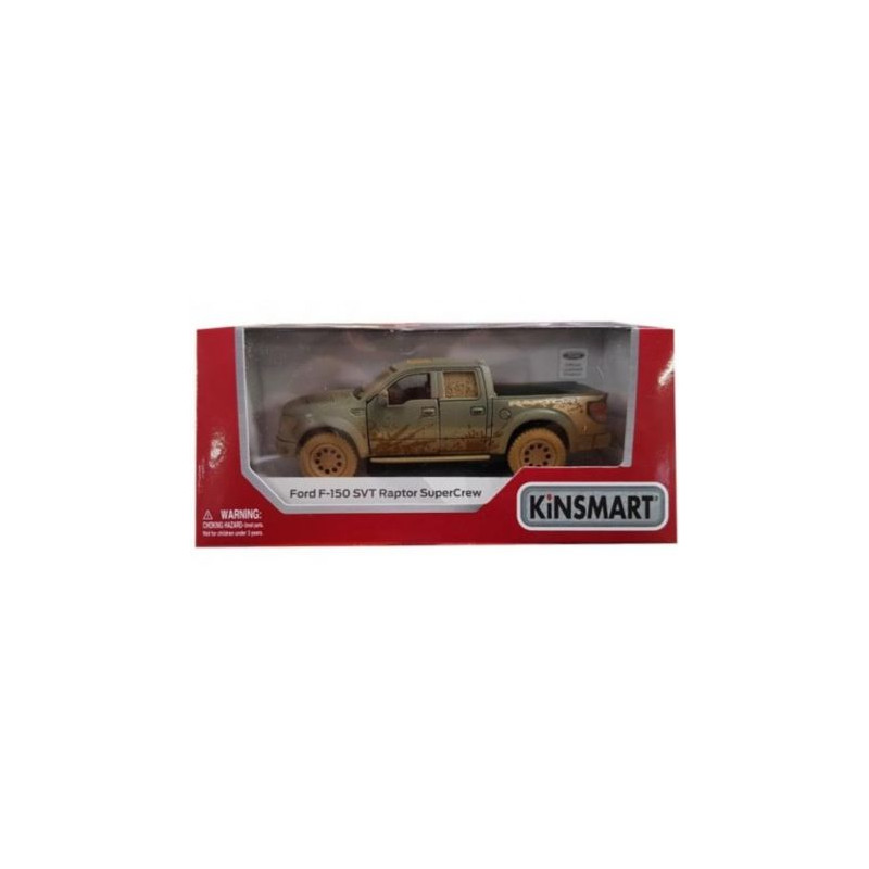 Licencjonowany model auta Ford F-150 SVR Raptor wykonany w skali 1:46 z napędem pull back (po pociągnięciu auta do tyłu, mechanizm samoczynnie nakręca się i auto jedzie do przodu).