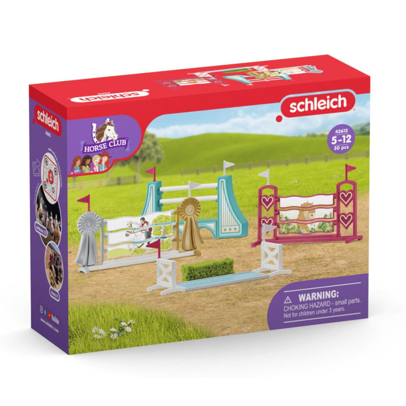 Wysokość przeszkód można dostosować. W zestawie znajdziecie rów z żywopłotem i zbiornikiem wodnym. Pamiętajcie - trening czyni mistrza!