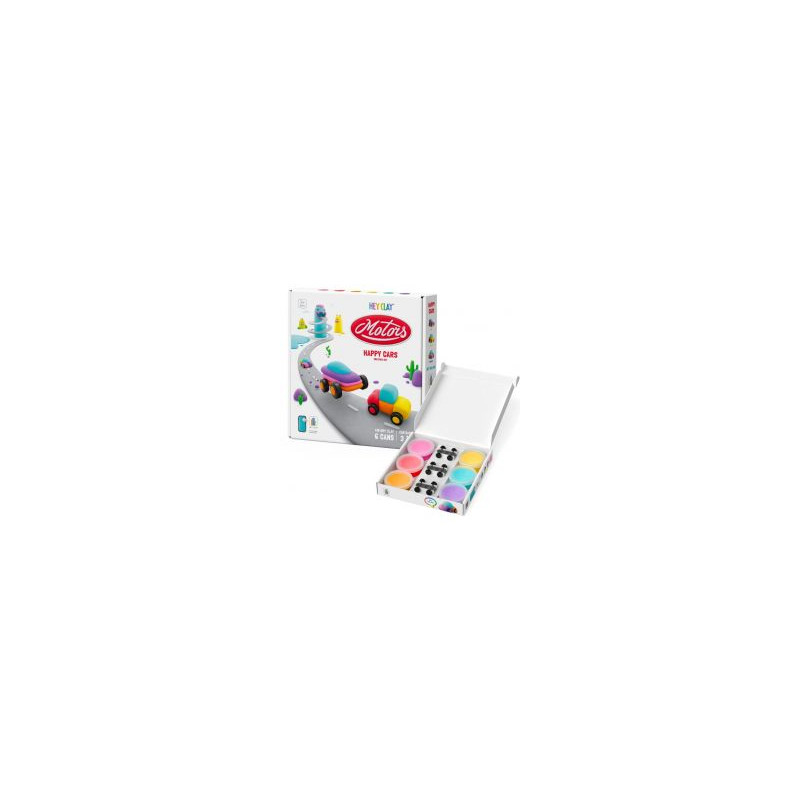 Chcesz, aby samochody kochały jeździć z Tobą tak samo jak Ty z nimi? Poznaj WESOŁE AUTA, które szaleją podczas jazdy. Nienawidzą stać bezczynnie w garażu albo na parkingu - są wtedy smutne i płaczą, załączając swoje alarmy. Jednak, gdy tylko uruchomisz silnik, w ich reflektorach pojawi się szczęście! Hey Clay - Wesołe Auta - wybierz jedno z trzech Wesołych Aut w zestawie: Ray, Quandro lub Bubbler. Następnie postępuj zgodnie z instrukcjami krok po kroku dostępnymi w aplikacji, aby profesjonalnie uformować auto na jednej z trzech podstaw. Podczas formowania dzieci uczą się prawdziwych technik rzeźbienia. A gdy figurka jest gotowa, jest nie tylko modelem, ale też prawdziwym autem, którym można się bawić i jeździć nim po stole czy pokoju! Po pozostawieniu w powietrzu przez 24 godziny po modelowaniu materiał zaczyna twardnieć i zamienia się w autko.