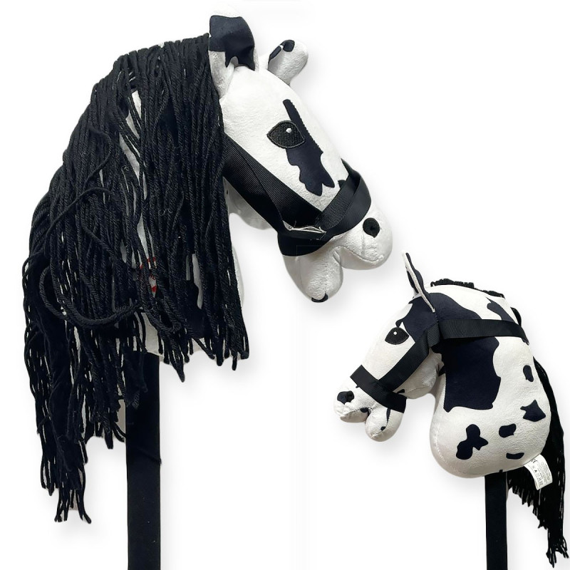 Pluszowa głowa konia na kiju z dźwiękiem ( hobby horse ) czarno-biała firmy norimpex