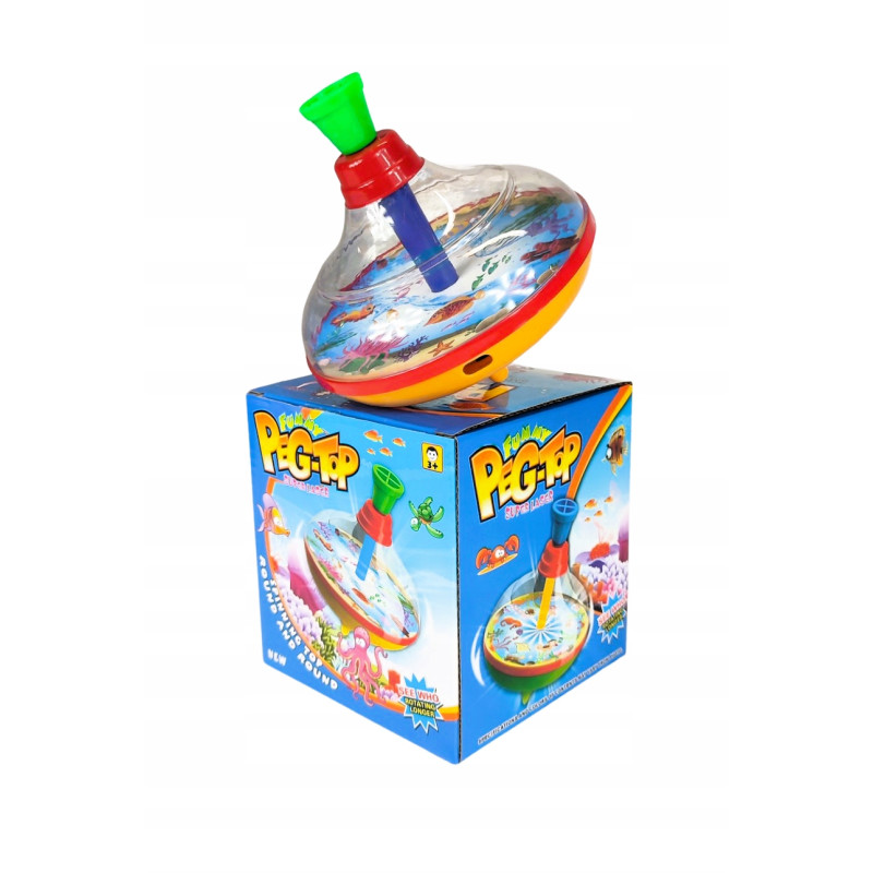 Bąk, tradycyjny bączek uniwersalna, ponadczasowa zabawka, którą bawili się nasi rodzice, my sami a teraz kolej na nasze dzieci. Zabawka wielopokoleniowa nadal na czasie bez względu na panującą modę. Zabawka bardzo prosta w obsłudze, należy nacisnąć tłok aby bączek zaczął wirować wokół własnej osi i obrazek na bączku mienił się kolorami.