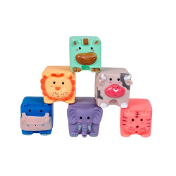 Miękkie klocki sensoryczne z motywem zwierząt do zabawy dla maluszka,również w kąpieli. Dziecko chwytając klocki odkrywa różne kształty faktury oraz poznaje zwierzęta. Każda ze ścian klocka ma inną fakturę oraz inny motyw. klocki można układać jeden na drugim.