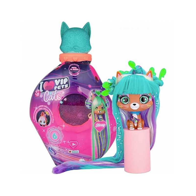 Dodatkowo do zestawu został dołączony specjalny klej oraz kolorowy, neonowy proszek, którym możesz przyozdobić włosy kotka, a następnie oświetlić je światłem UV umieszczonym w opakowaniu.