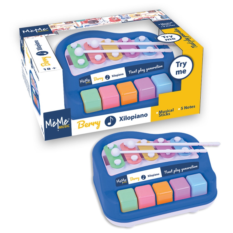 Metalowy ksylofon składający się z 5 metalowych elementów. Zestaw zawiera 2 pałeczki. Instrument wydaje realistyczny dźwięk.